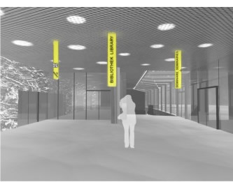 Das System der Wegefindung im neuen Gebäude wird mit einem Typus / Modul organisiert